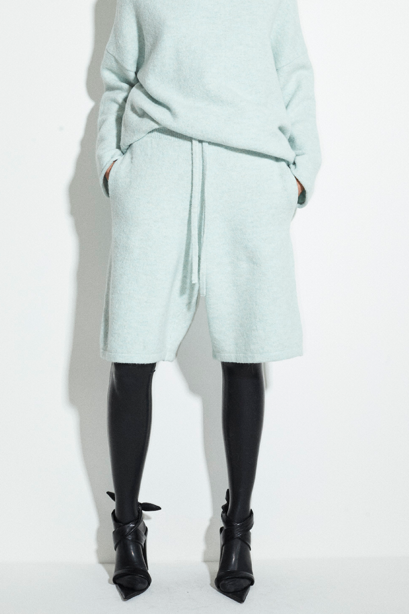 Relaxed fit knitted shorts with elastic waistband with drawstrings in soft cotton alpaca blend.