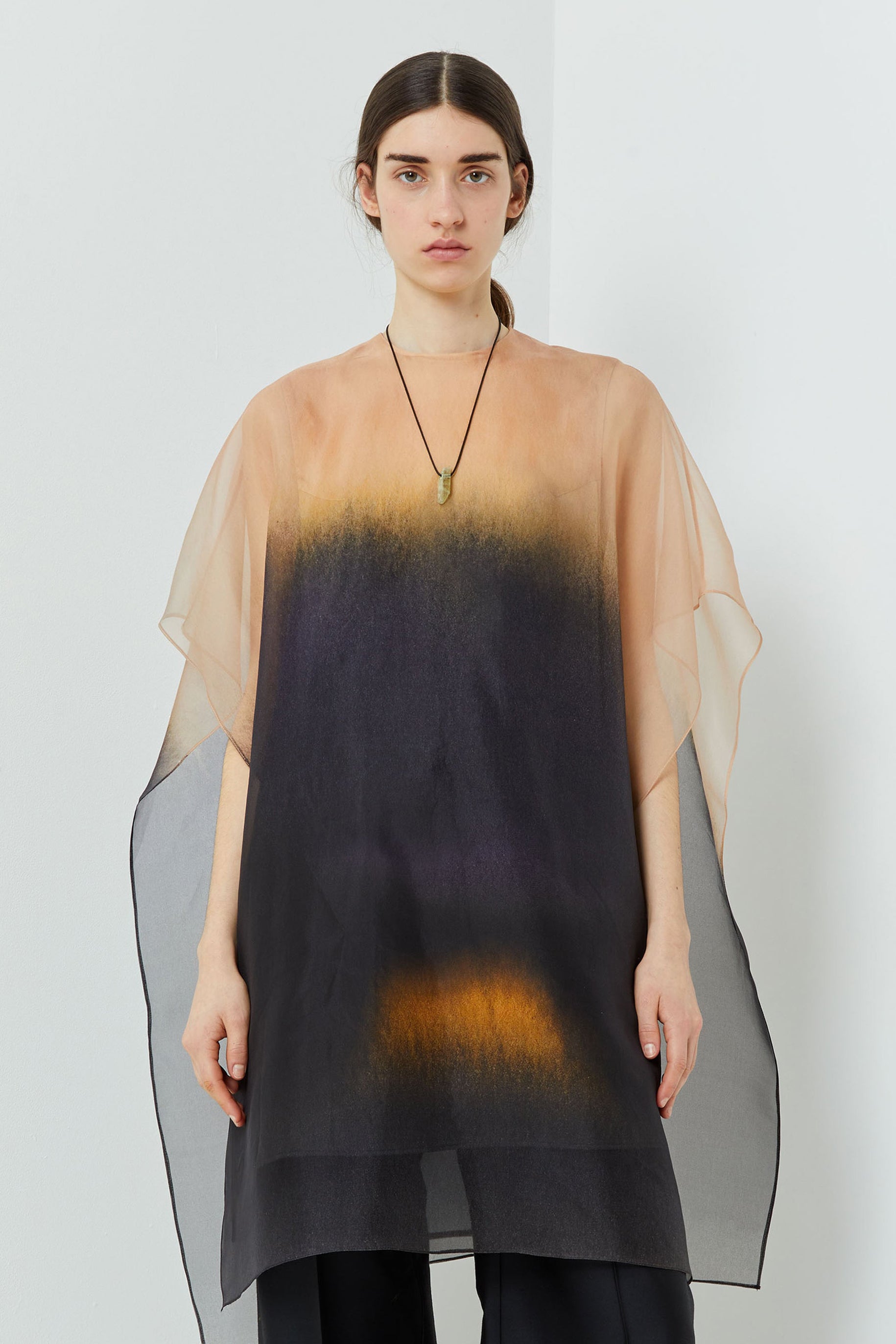 Oversized top with two layers.Organza top layer on a silk satin top.