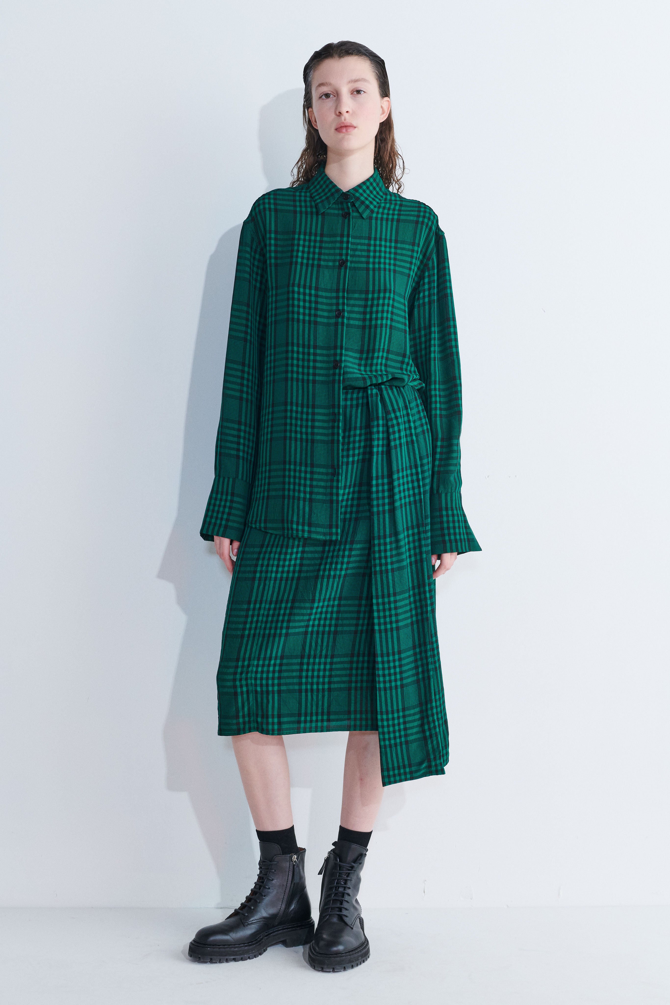 クラシックボタンダウン長袖シャツ、レギュラーカラー、カーブヘムライン、ビスコースチェック素材。