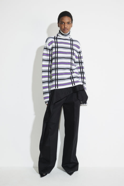Relaxed fit knitted sweater with turtle neck and long sleeves in ottoman check stich in wool blend.