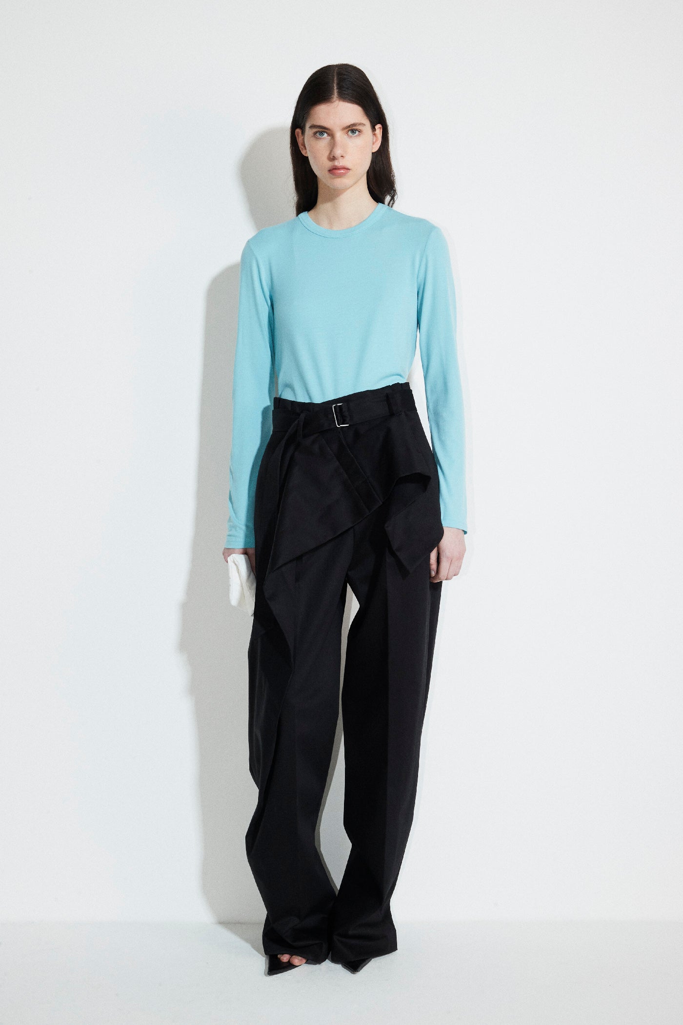 Fitted long sleeve t-shirt with round neck in lightweight wool stretch jersey.