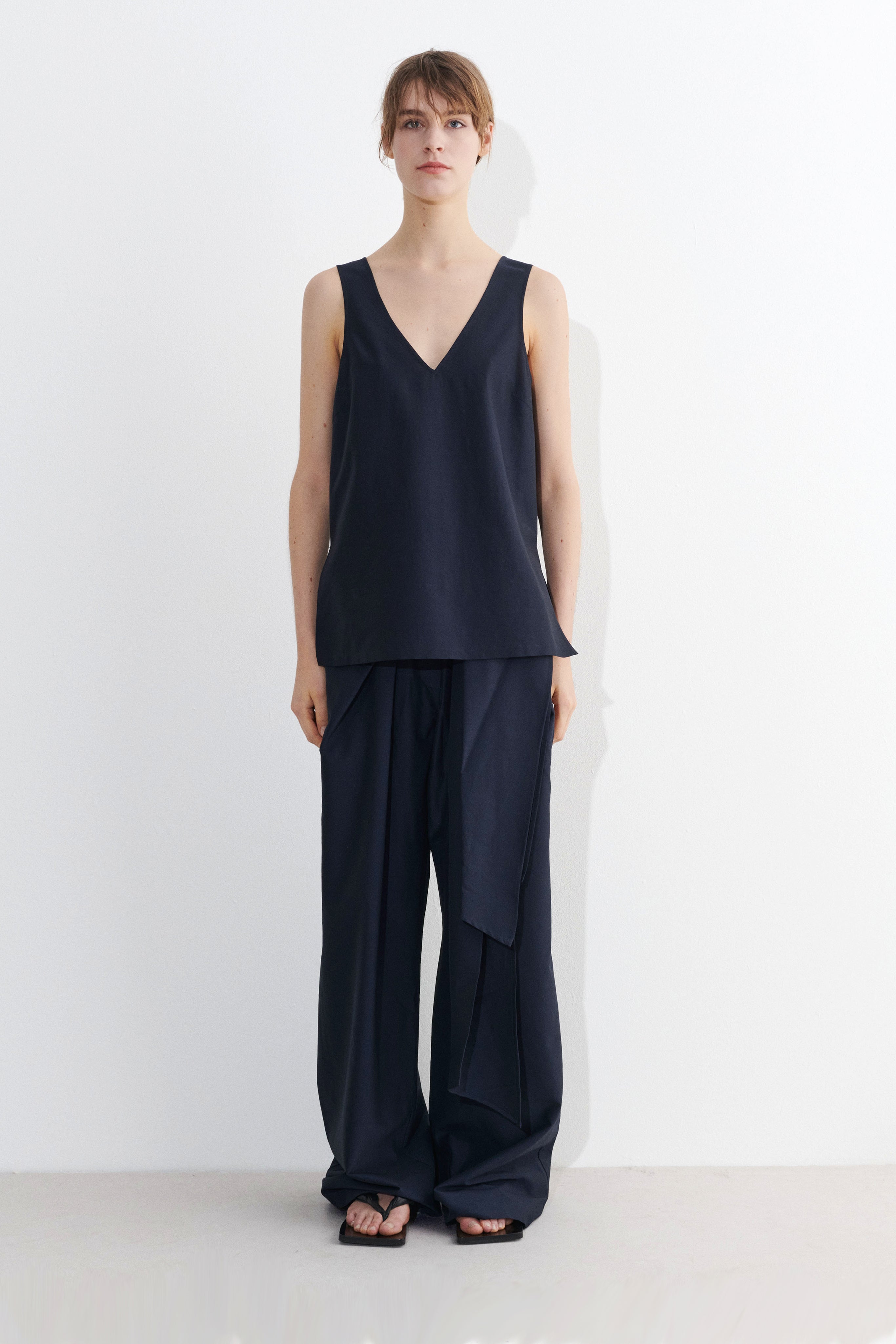 Sleeveless top with V-Neck.