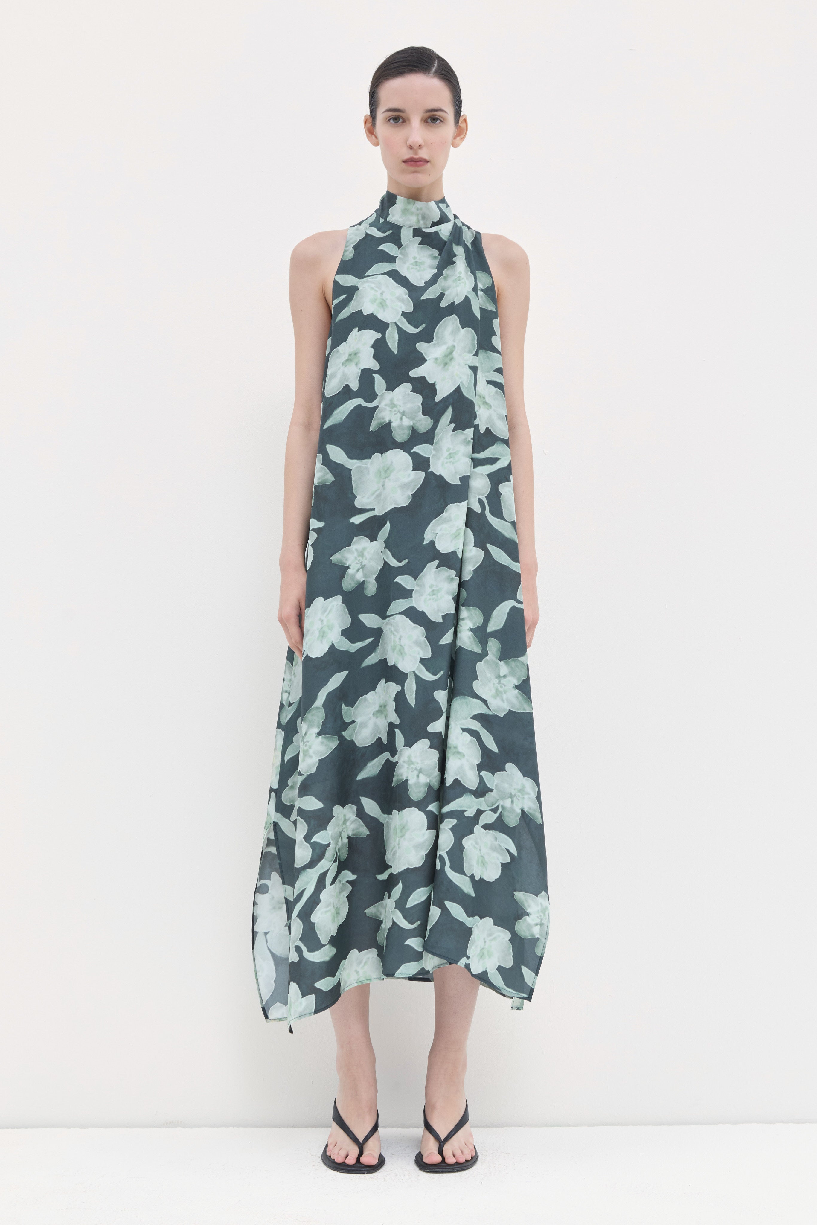 Delena Woven Dress in silk with a sleeveless design and tie-back detail at the back. The adjustable closure lets you customize the fit while keeping clean, simple lines. A timeless piece that works beautifully on its own or layered.