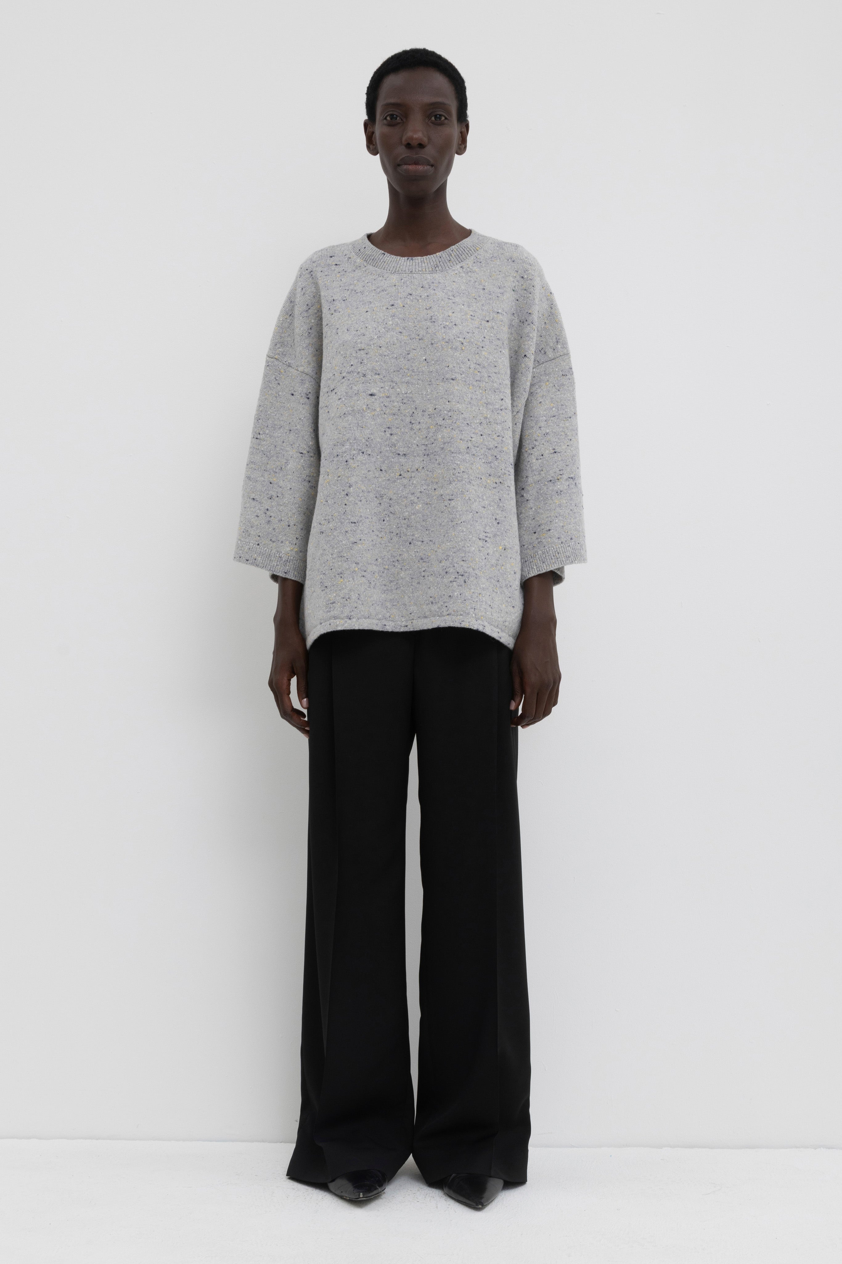 The Kalas Knitwear Top showcases Italian yarn blended in virgin wool in a relaxed oversized silhouette. Designed for those who appreciate understated quality, this refined piece offers timeless appeal and versatile layering potential for a curated wardrobe.