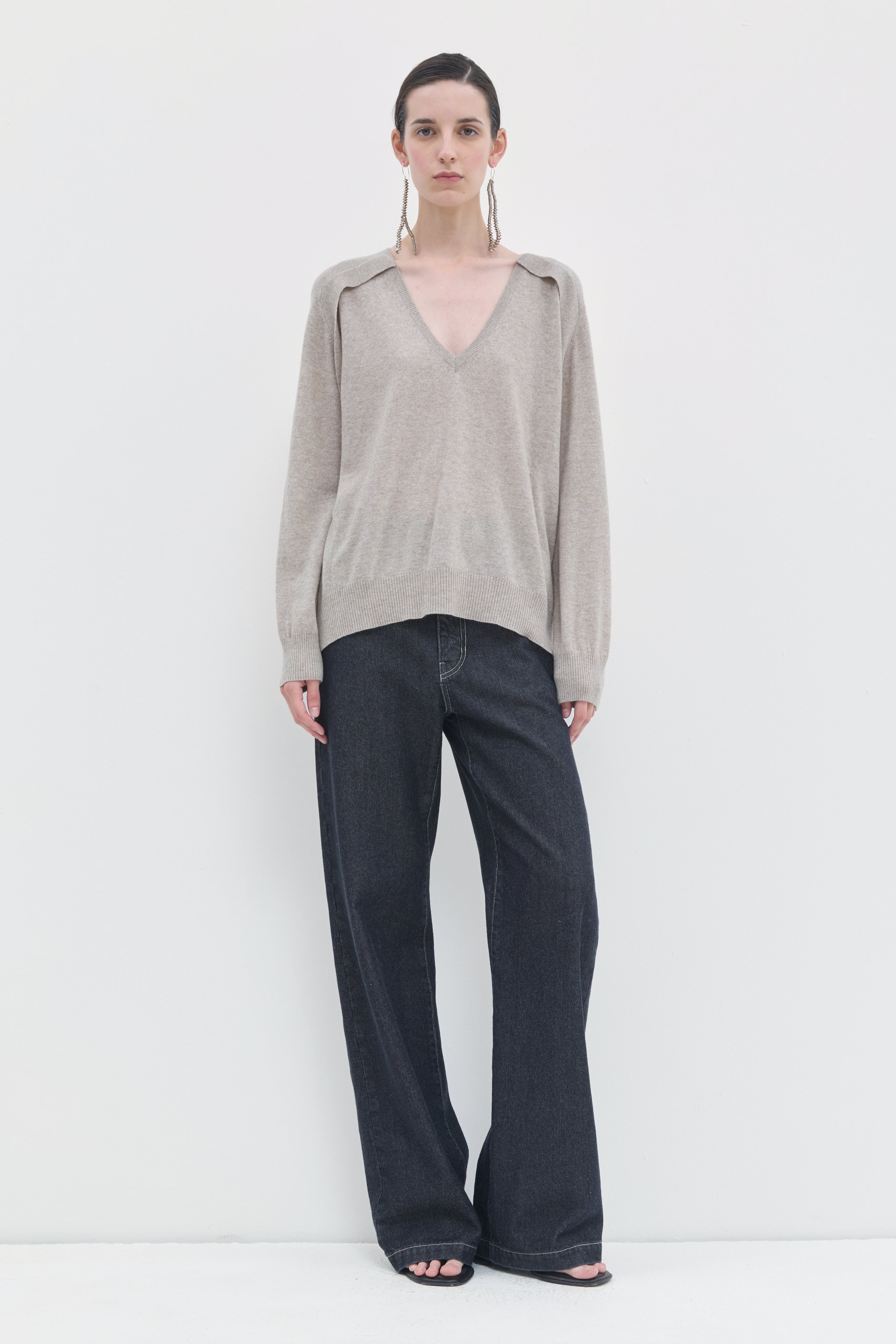 Kura knitwear sweater in refined knit fabric, defined by its V-neck silhouette and signature hammer sleeve construction. Transition effortlessly from casual denim pairings to elevated evening wear. A considered essential that anchors any wardrobe with understated sophistication.